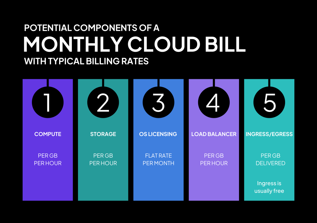 Here is an example of potential components that can make up the cost of one single machine on your cloud monthly bill:
