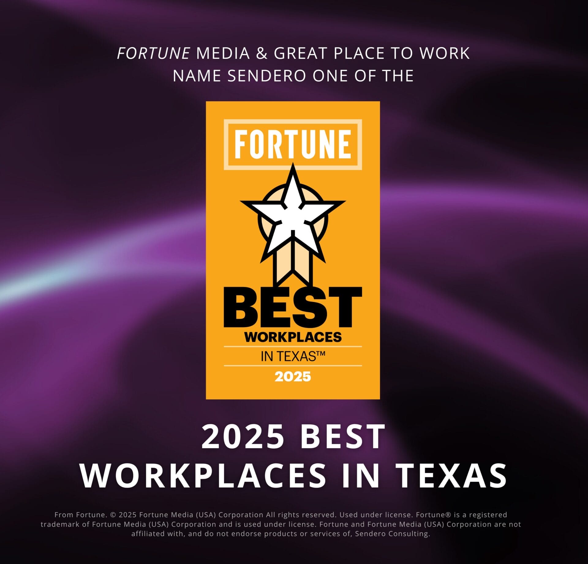 In the past year, Sendero has been recognized by USA TODAY and Top Workplaces, certified by Great Place To Work, and named to the 2024 Fortune Best Workplaces in Consulting & Professional Services™ list. Sendero’s award-winning culture is the result of the company’s dedication to cultivating a workplace where employees feel valued, inspired, and empowered to achieve their fullest potential.